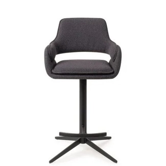 Upgrade je eetervaring met de Oketo barkruk, voorzien van tweedelige bekleding in verschillende stoffen, gecombineerd met een bijpassend gepoedercoat frame. Het frame heeft een 360 graden draaifunctie met automatische terugkeer.